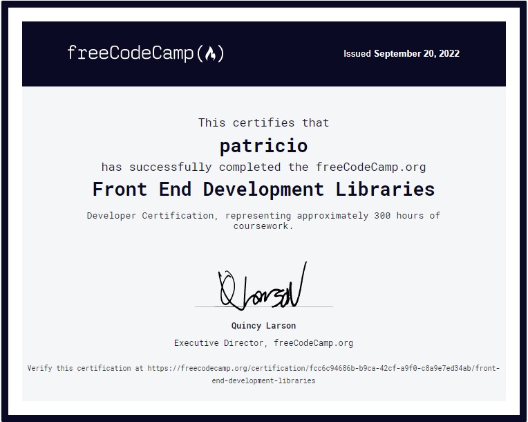 ¡Hola! Mi nombre es Patricio. Soy un desarrollador Web Full Stack con nacionalidad Argentina, con una gran experiencia de hace ya 2 felices años y una dedicación de por vida al aprendizaje
